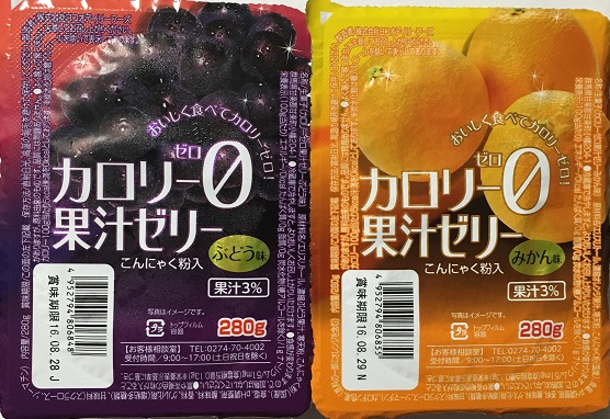サッパリしつつも、味はしっかりしていて、チュルンとした食べ応えで、満足感が大きいです。ヨコオデイリーフーズと言えばこんにゃくで有名ですが、このゼリーも、こんにゃく粉入。ぶどう味、みかん味とお好みで選べます(^ω^)